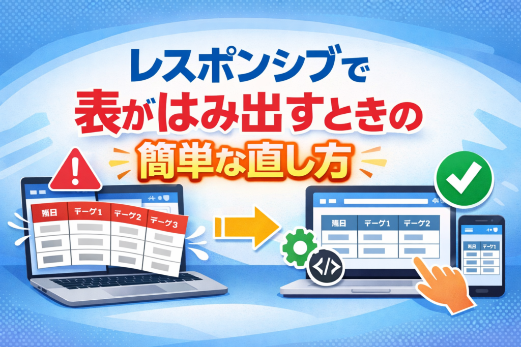 パソコンでは問題なく表示されている表(テーブル)が、スマホで見ると画面からはみ出してしまうことはとても多いです。 実際に、横スクロールが出てしまい、読みにくくなってしまうケースも少なくありません。 そこで、この記事では、スマホで表が崩れる... -