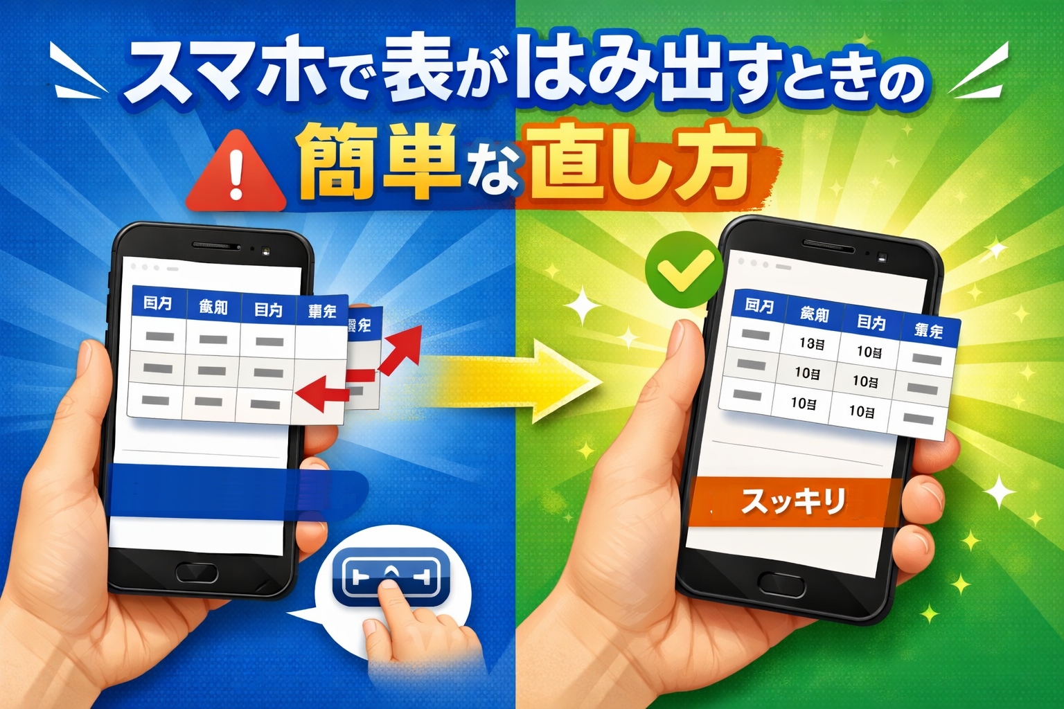 「スマホで表(テーブル)がはみ出すときの簡単な直し方」のコンテンツはいかがでしたでしょうか?