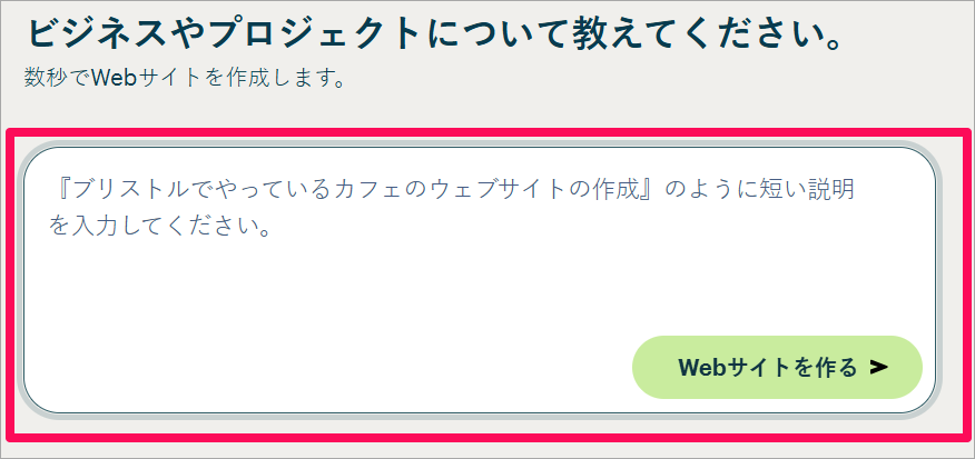 あとは、文章を入力したら、「Webサイトを作る」のボタンをクリックします。