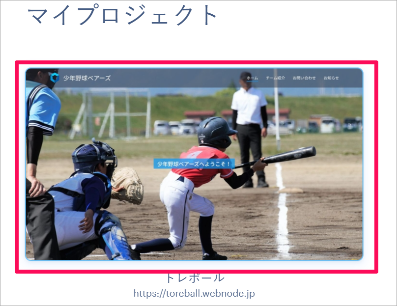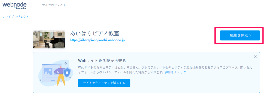 2. 「マイプロジェクト」の画面で、ホームページの画像をクリックする。