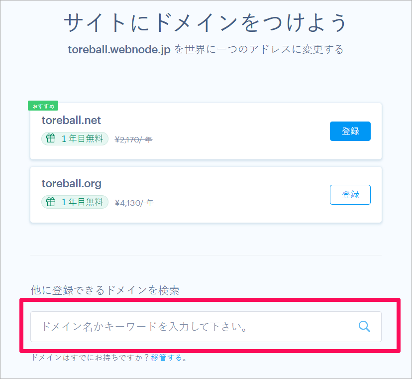 有料プラン(プレミアムプラン)に移行したら、次に行うことは、独自ドメインの取得することです。