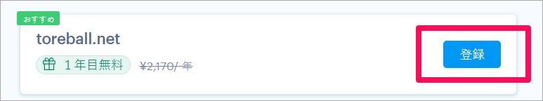 5. ご希望のドメイン名の欄で、「登録」をクリックする。