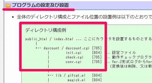ちなみに、フォルダ構成については、アクセスカウンターをダウンロードしたページの「プログラムの設定及び設置」の箇所を確認してみてください。
