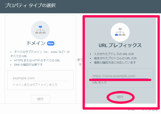 2.「プロパティ タイプの選択」で、「URLプレフィックス」を選択し、