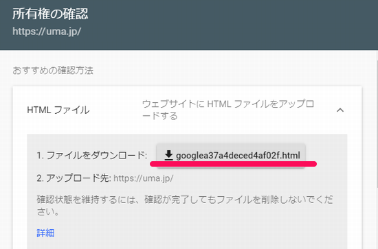 3.「所有権の確認」で、HTMLファイルをデスクトップにダウンロードする。