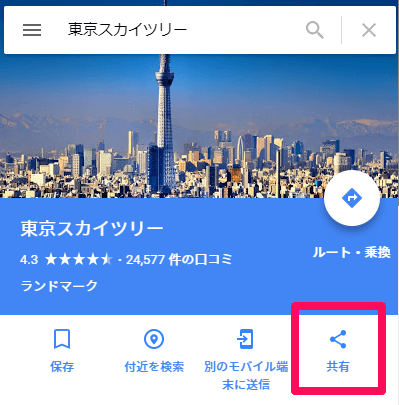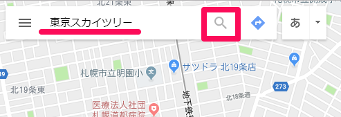 なお、ここでは例として、「東京スカイツリー」の場所を、地図で表示してみたいと思います。