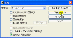 ・ 検索した後、次の文字に移動するには、 F3 を押すこと