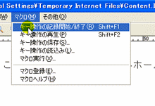 そして、記録したい作業を終えたら、[マクロ] → [キー操作の記録開始/終了] を、もう一度クリックします。