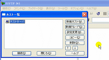 そして、今回は、すでに設定してあるテストサーバへ、接続をしてみたいと思います。