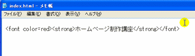 また、文字を赤くするには、<font color=red>というタグを使います。