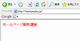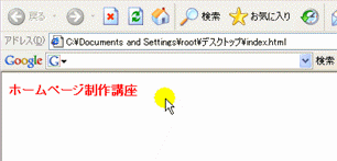 この状態でエンターを押すことによって、先ほど作成したHTMLファイルの情報が、ホームページ上に表示されているという形になります。