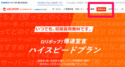 まず、ロリポップのホームページ にアクセスして、「お申込み」をクリックします。