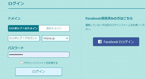 お金を支払うには、ロリポップのユーザー専用ページにログインします。