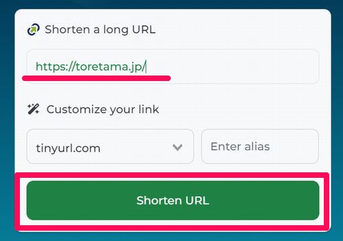 手順2:短縮したいURLを入力して、「Shorten URL」のボタンをクリック。
