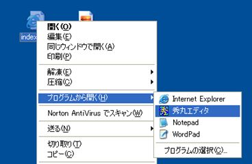 ・ HTMLファイルを更新する場合、HTMLファイルを選択して、「アプリケーションキー」を押し、「プログラムから開く」を選択して、秀丸エディタなどクリックすれば、HTMLファイルを更新できる。