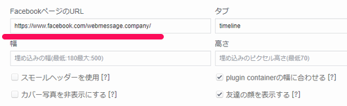 ホームページ上に表示させたい FacebookページのURLを入力。