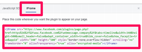 なお、私であれば、https://www.facebook.com/webmessage.company/ が、私のFacebookページのURLになります。(このようなURLをコピペで貼り付けて、下にある「コードを取得」のボタンをクリックする)