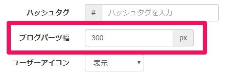 表示されるインスタグラムの画面の「横幅」を変更したい場合は、「ブログパーツ幅」の数字を変更することで、横幅を変更することができます。