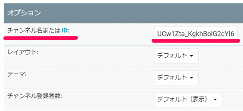 なお、私であれば、「UCw1Zta_KgkhBolG2cYI6juw」が、YouTube のチャンネルIDになります。