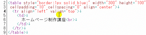 このように、「align」と「valign」を使うことで、テーブルや文字の場所を自由に変更することができます。