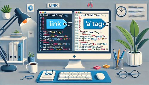 「linkタグ」は、ホームページの外部ファイル(たとえばスタイルシートやアイコン)を読み込むために使います。一方、「aタグ」は、ホームページ内で他のページや場所に移動するためのリンクを作ります。